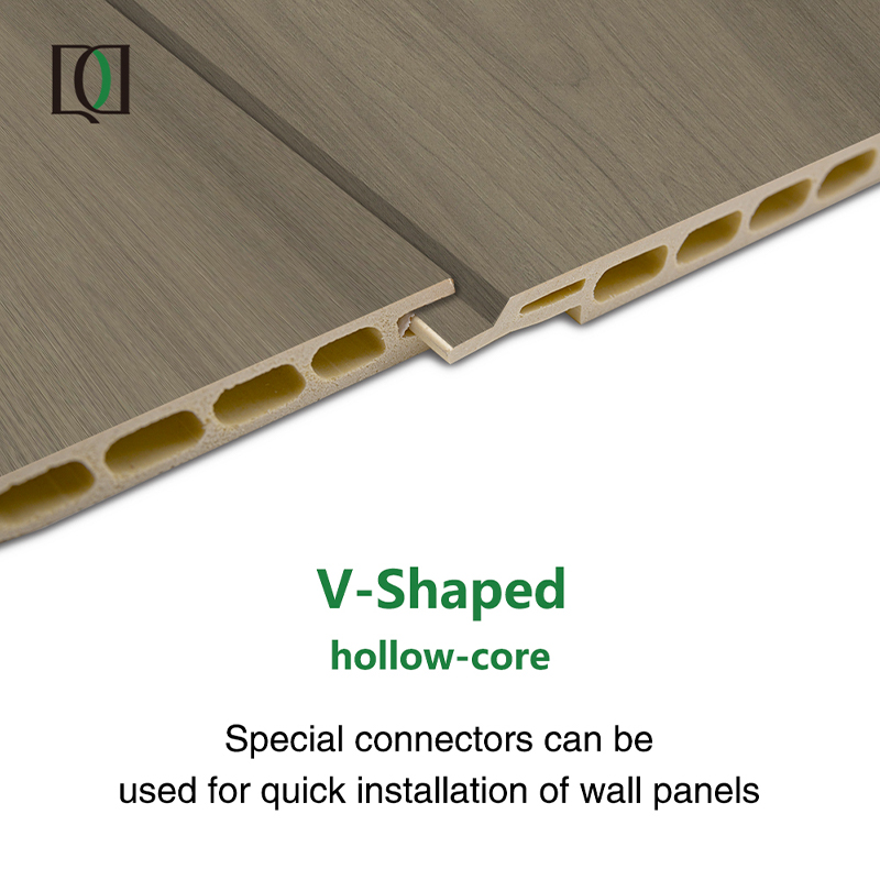 من خلال اعتماد هيكل ربط نقر ولسان على شكل V مع موصلات خاصة ملائمة، تحقق اللوحة تركيبًا سلسًا وسريع الجفاف بدون إجراءات بناء معقدة، مما يؤدي إلى تقصير دورة التثبيت بشكل كبير وتقليل تكاليف العمالة. وفي الوقت نفسه، يقدم تصميم V-groove تأثيرًا بصريًا رائعًا ثلاثي الأبعاد على المفصل، مما يعزز الطبقات المكانية والشعور بالتصميم. إن الهيكل الأساسي المجوف الداخلي لا يقلل بشكل فعال من وزن اللوحة فحسب، بل يمنح المنتج أيضًا عزلًا ممتازًا للصوت وأداء تقليل الضوضاء، والذي يمكن أن يمنع بشكل فعال نقل الضوضاء داخل وخارج المساحة، مما يخلق بيئة هادئة ومريحة. وفي الوقت نفسه، يشكل الهيكل المجوف طبقة عازلة للهواء، مما يحقق العزل الحراري وتوفير الطاقة، ويحسن كفاءة التحكم في درجة حرارة الفضاء.