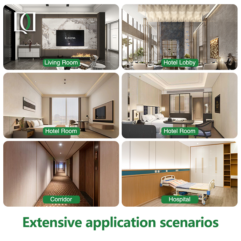 يحتوي المنتج على مجموعة واسعة من سيناريوهات التطبيق، تغطي المساحات السكنية مثل غرف المعيشة وغرف النوم، والمساحات التجارية مثل ردهات الفنادق وغرف الضيوف والممرات، بالإضافة إلى الأماكن العامة مثل المستشفيات ومباني المكاتب. بفضل حماية البيئة والمتانة والجماليات، فإنه يلبي ديكورات الجدران والاحتياجات الوظيفية لسيناريوهات متعددة، وهو بديل مثالي مطور لمواد الجدران التقليدية.